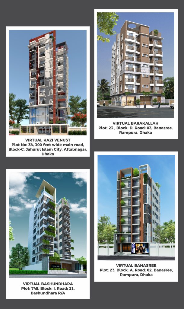 Virtual Homes Ltd. is a fast-growing real estate company in Bangladesh. Virtual Homes Ltd. has been known for its spectacular and innovative living concepts and daring architectural designs. This has been made possible by the committed professional architects.
